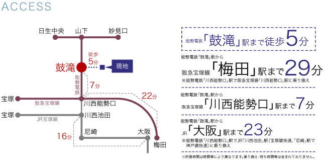 三宮へは30分以内、大阪へも1時間以内と通勤にも便利。