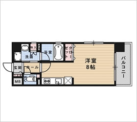 - 専有面積:25.90平米(洋室8帖)